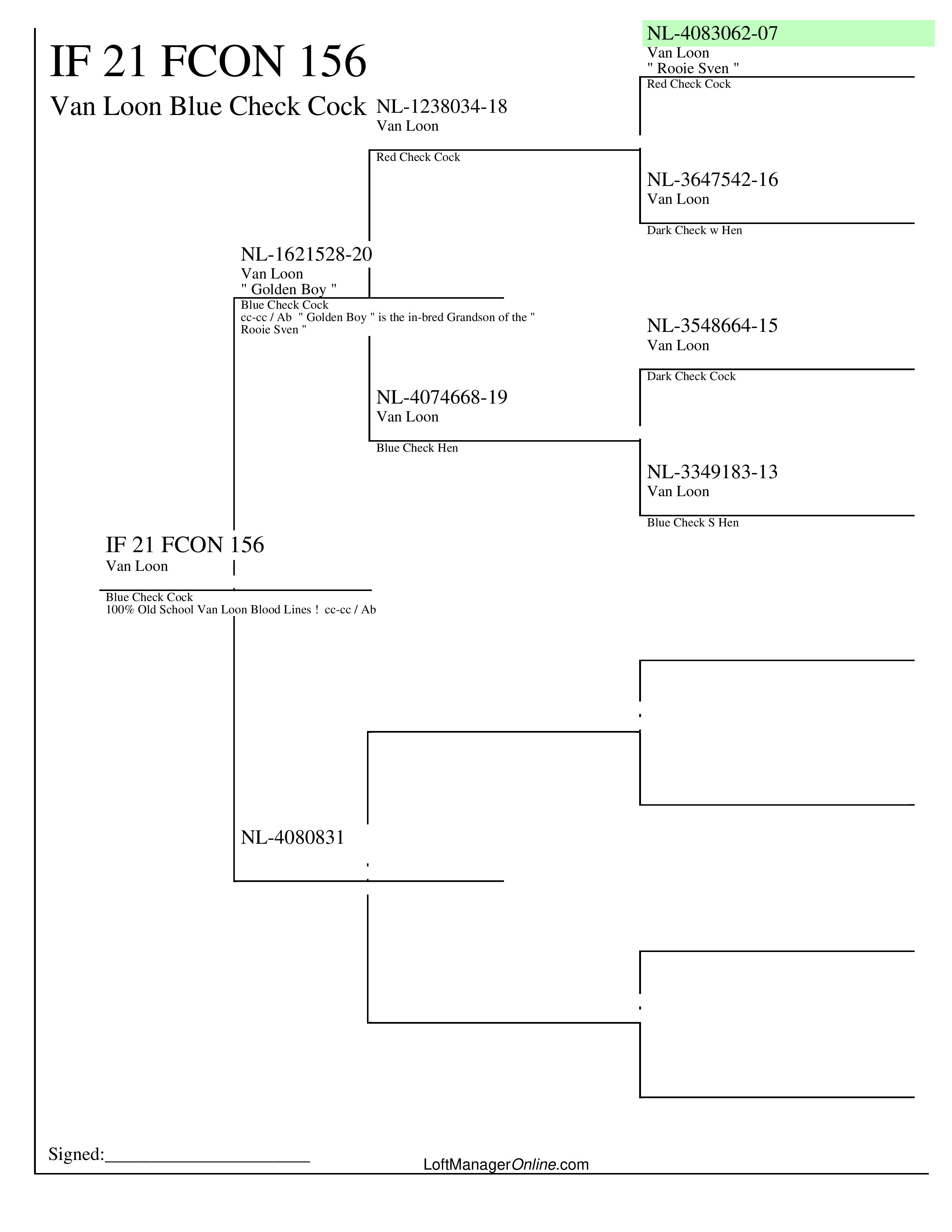This 2021 cock is a pure Van Loon, offering 100% of the celebrated Van Loon bloodline. Renowned for their consistency, speed, and winning performance, Van Loon pigeons are a staple in top racing lofts worldwide. This cock is an excellent choice for fanciers looking to strengthen their breeding program with pure, high-quality genetics.